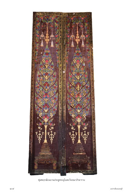 พุ่มพฤกษ์บนบานประตูพระอุโบสถวัดเขมาภิรตาราม ๑๐๔ มฤดกเมืองนนทบุรี