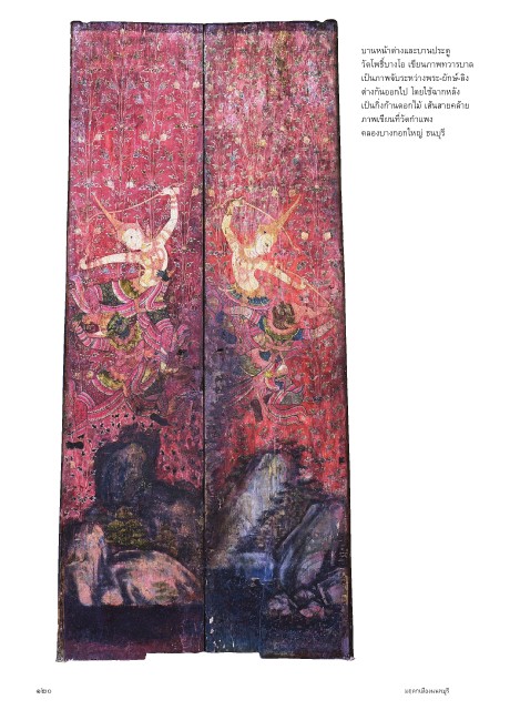 บ�นหน้�ต่�งและบ�นประตู วัดโพธิ์บ�งโอ เขียนภ�พทว�รบ�ล เป็นภ�พจับระหว่�งพระ-ยักษ์-ลิง ต่�งกันออกไป โดยใช้ฉ�กหลัง เป็นกิ่งก้�นดอกไม้ เส้นส�ยคล้�ย ภ�พเขียนที่วัดกำ�แพง คลองบ�งกอกใหญ่ ธนบุรี ๑๒๐ มฤดกเมืองนนทบุรี