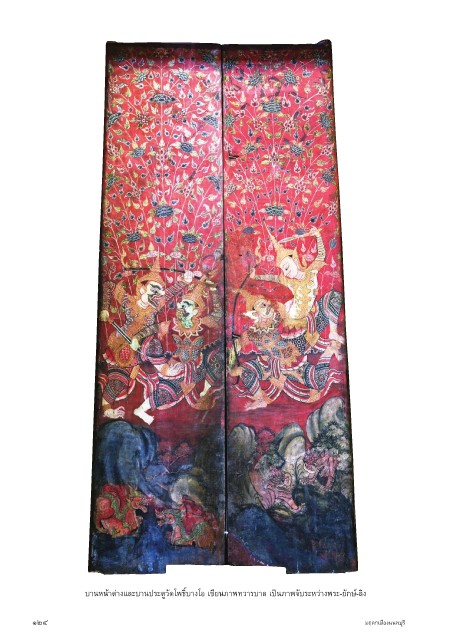 บ�นหน้�ต่�งและบ�นประตูวัดโพธิ์บ�งโอ เขียนภ�พทว�รบ�ล เป็นภ�พจับระหว่�งพระ-ยักษ์-ลิง ๑๒๔ มฤดกเมืองนนทบุรี