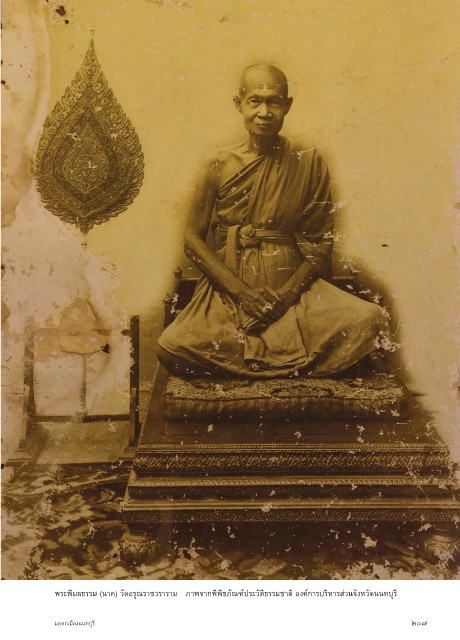 พระพิมลธรรม (นาค) วัดอรุณราชวราราม ภาพจากพิพิธภัณฑ์ประวัติธรรมชาติ องค์การบริหารส่วนจังหวัดนนทบุรี มฤดกเมืองนนทบุรี ๒๐๗