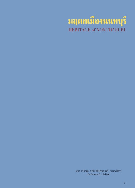 มฤดกเมืองนนทบุรี HERITAGE of NONTHABURI เอนก นาวิกมูล ธงชัย ลิขิตพรสวรรค์ : บรรณาธิการ จังหวัดนนทบุรี : จัดพิมพ์ มฤดกเมืองนนทบุรี ๑