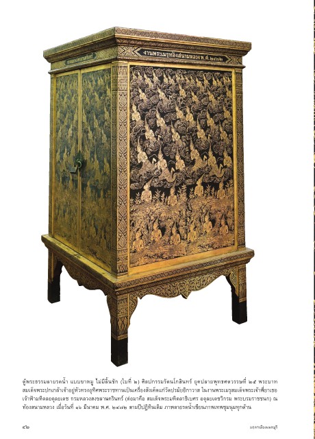 ตู้พระธรรมล�ยรดนำ้� แบบข�หมู ไม่มีลิ้นชัก (ใบที่ ๒) ศิลปกรรมรัตนโกสินทร์ ยุคปล�ยพุทธศตวรรษที่ ๒๕ พระบ�ท