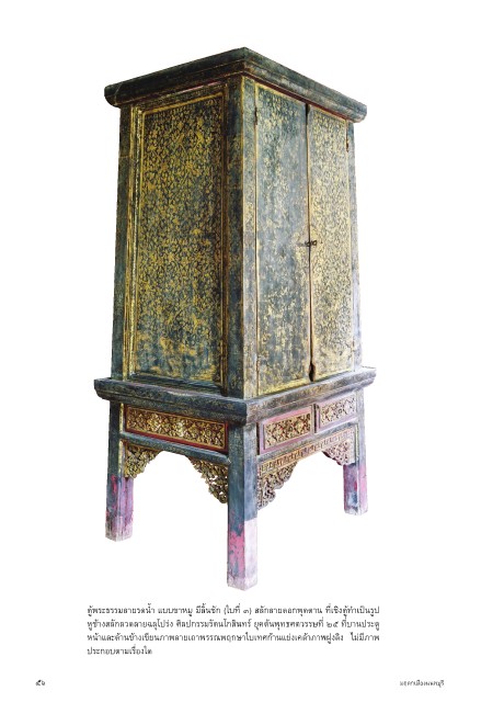 ตู้พระธรรมล�ยรดนำ้� แบบข�หมู มีลิ้นชัก (ใบที่ ๓) สลักล�ยดอกพุดต�น ที่เชิงตู้ทำ�เป็นรูป