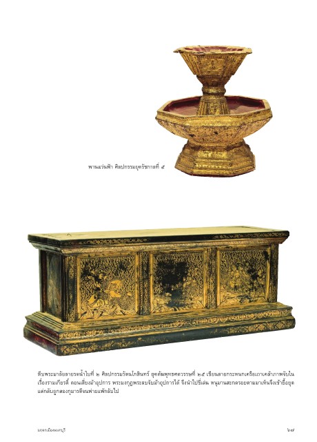หีบพระม�ลัยล�ยรดนำ้�ใบที่ ๒ ศิลปกรรมรัตนโกสินทร์ ยุคต้นพุทธศตวรรษที่ ๒๕ เขียนล�ยกระหนกเครือเถ�เคล้�ภ�พจับใน