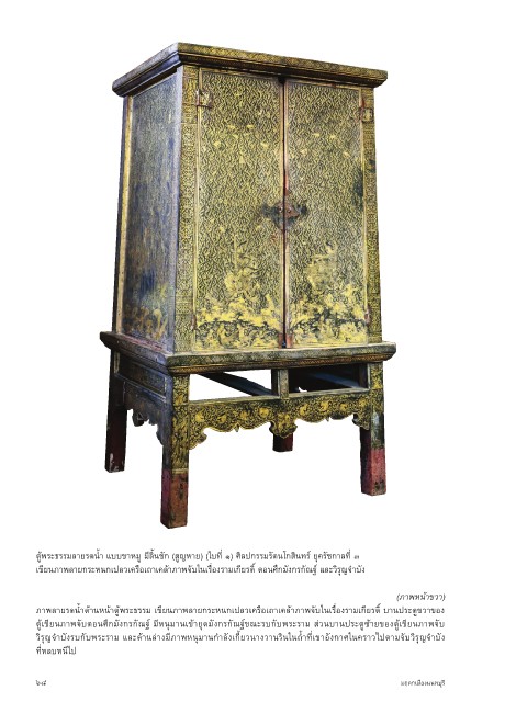 ตู้พระธรรมล�ยรดนำ้� แบบข�หมู มีลิ้นชัก (สูญห�ย) (ใบที่ ๑) ศิลปกรรมรัตนโกสินทร์ ยุครัชก�ลที่ ๓