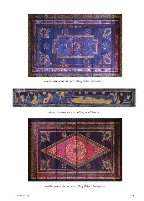 ภาพจิตรกรรมบนเพดานศาลาการเปรียญ ซึ่งรังสรรค์อย่างงดงาม ภาพจิตรกรรมบนเพดานศาลาการเปรียญ ตอนปรินิพพาน ภาพจิตรกรรมบนเพดานศาลาการเปรียญ ซึ่งรังสรรค์อย่างงดงาม มฤดกเมืองนนทบุรี ๘๑